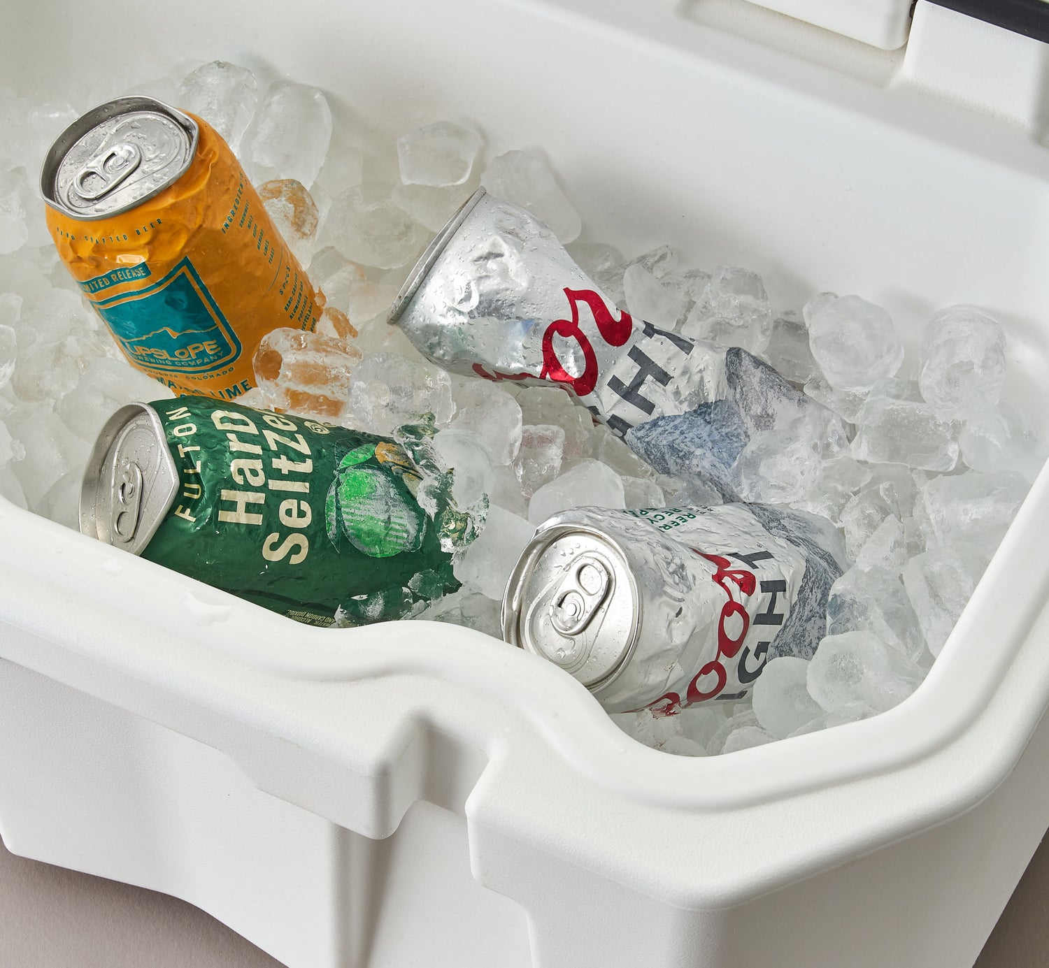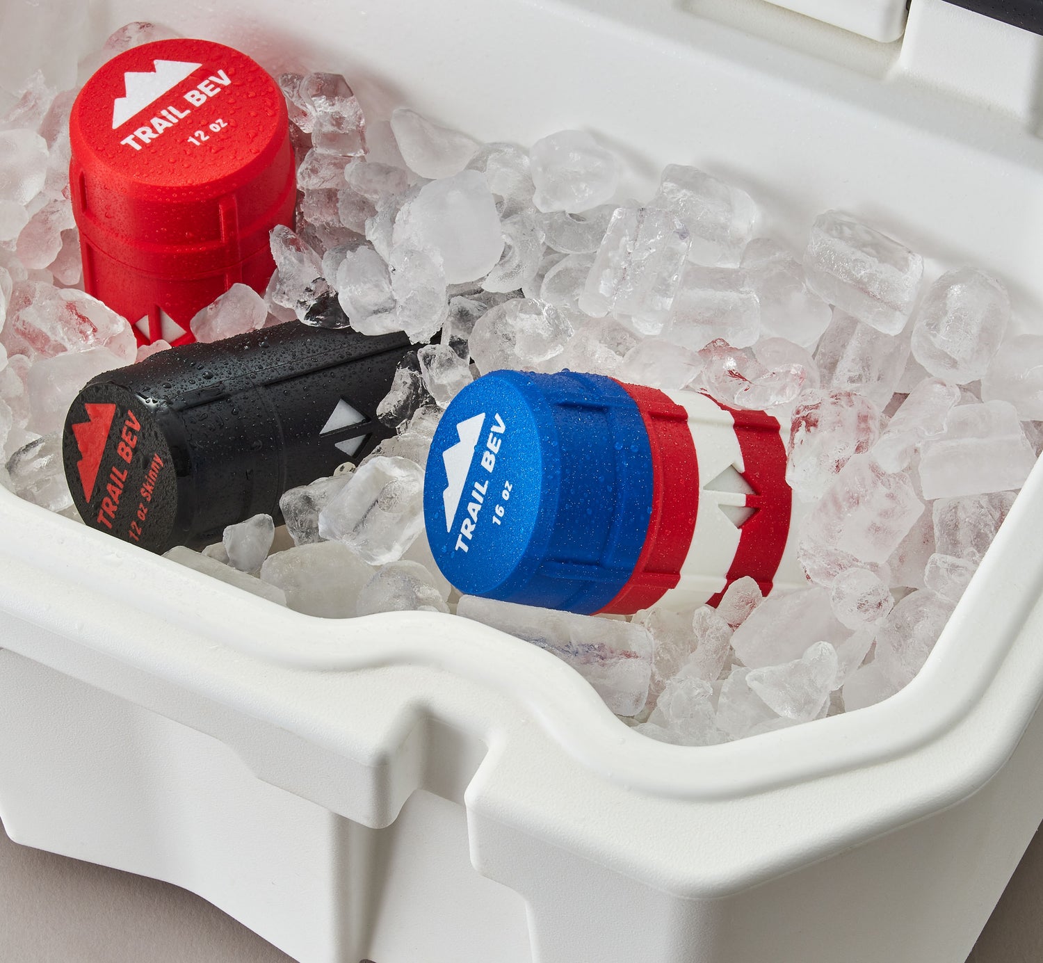 Simply chuck your Trail Bevs in your cooler to keep them nice and frosty. They will be protected from smashing into each other or other objects or from sharp chunks of ice that want to blow up your cans. If you're really givin' it, there's some real gory carnage going on inside that cooler.
