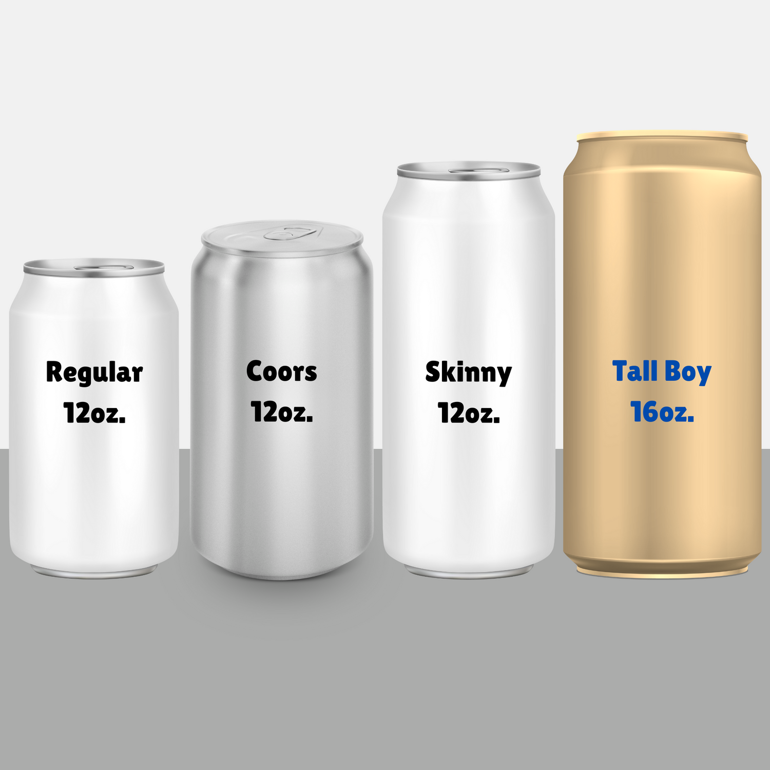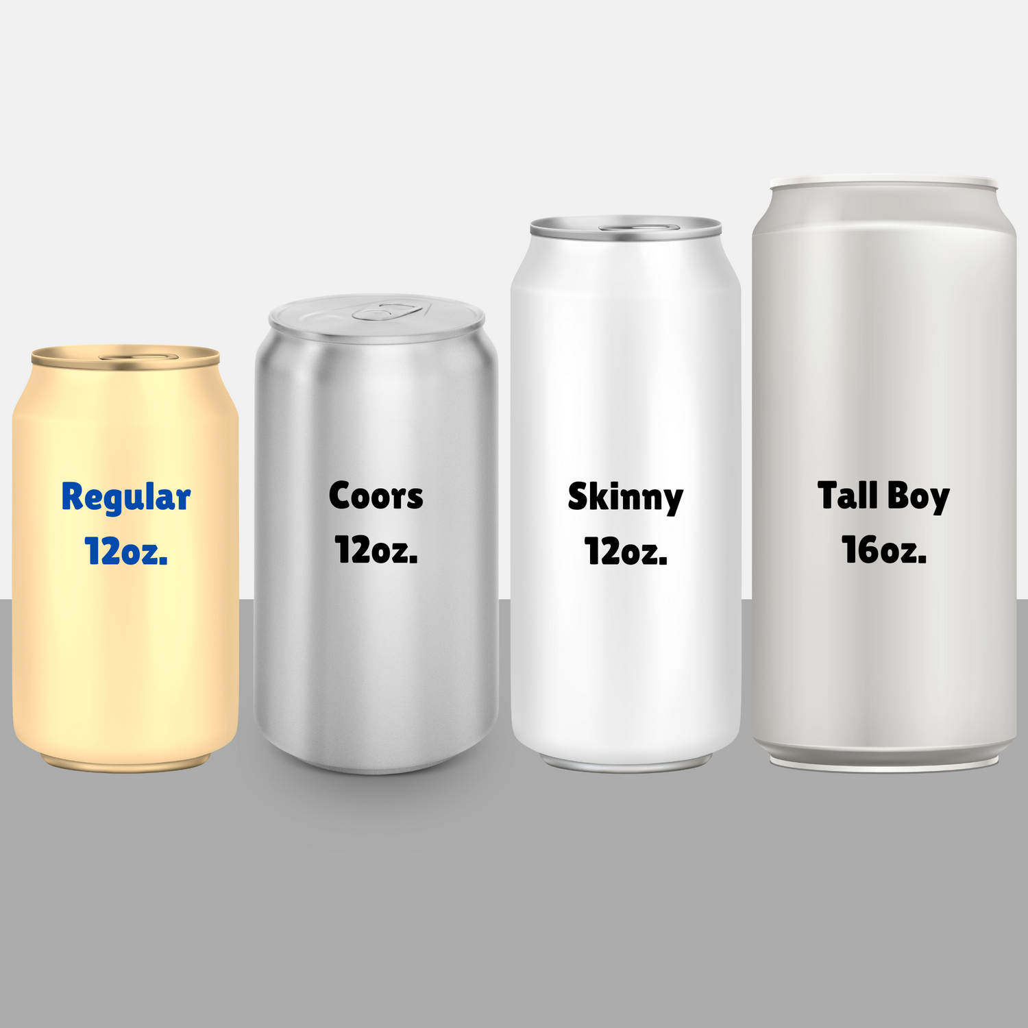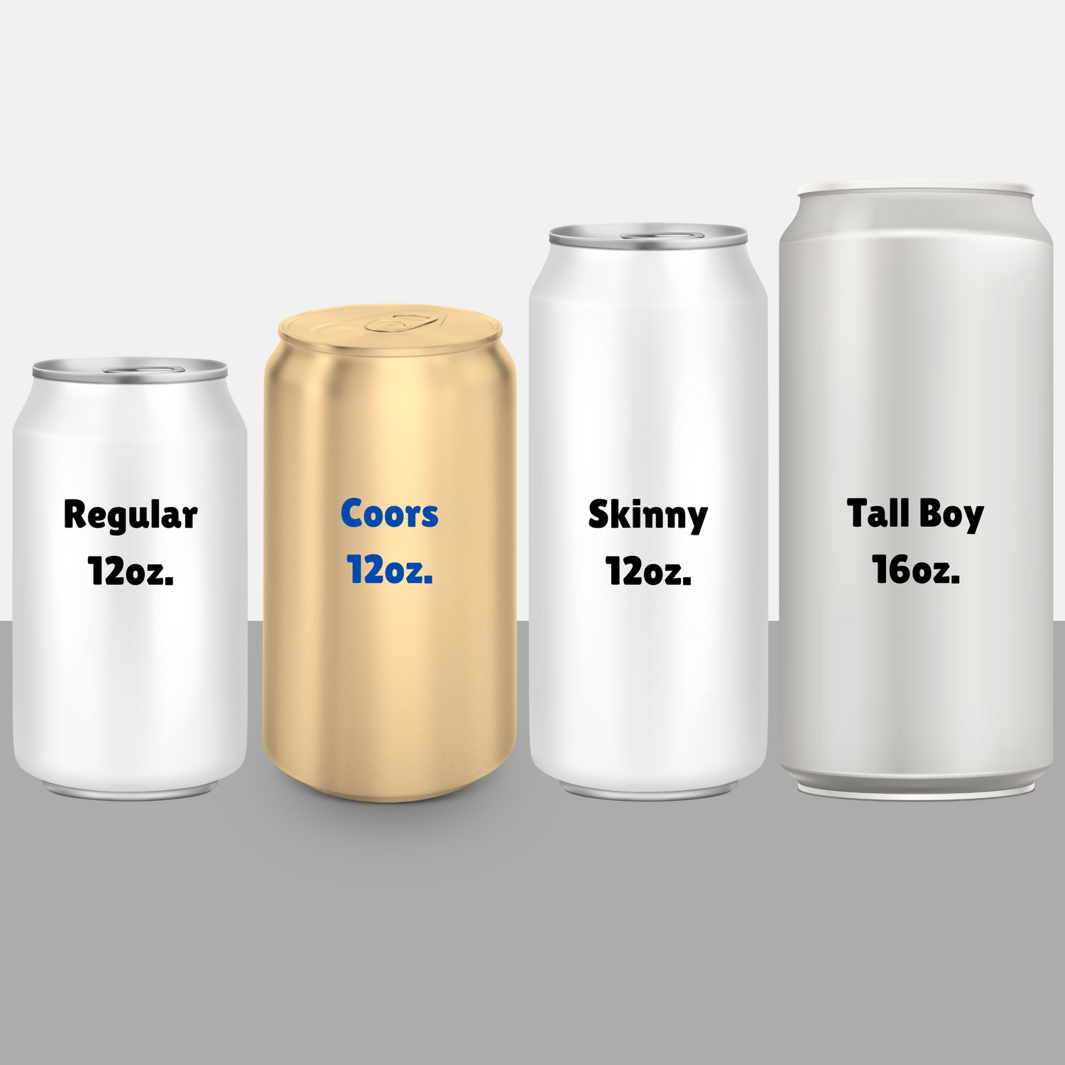 These are your typical 12 ounce regular or standard cans. These are most of your favorite soft drinks and domestic beers (except Coors, which uses its own size).